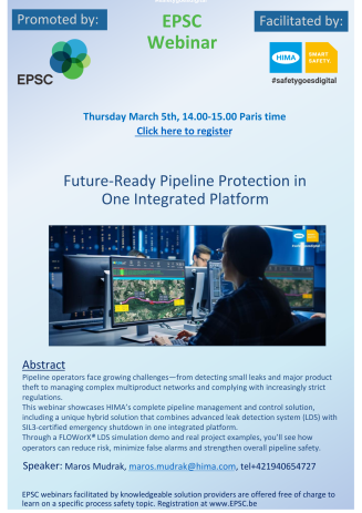 Join us for the EPSC Webinar: Future Ready Pipeline Protection in One Integrated Platform presented by Maros Mudrak, from HIMA. The webinar will take place on 5 March 2026 at 14:00 CET.